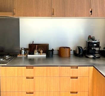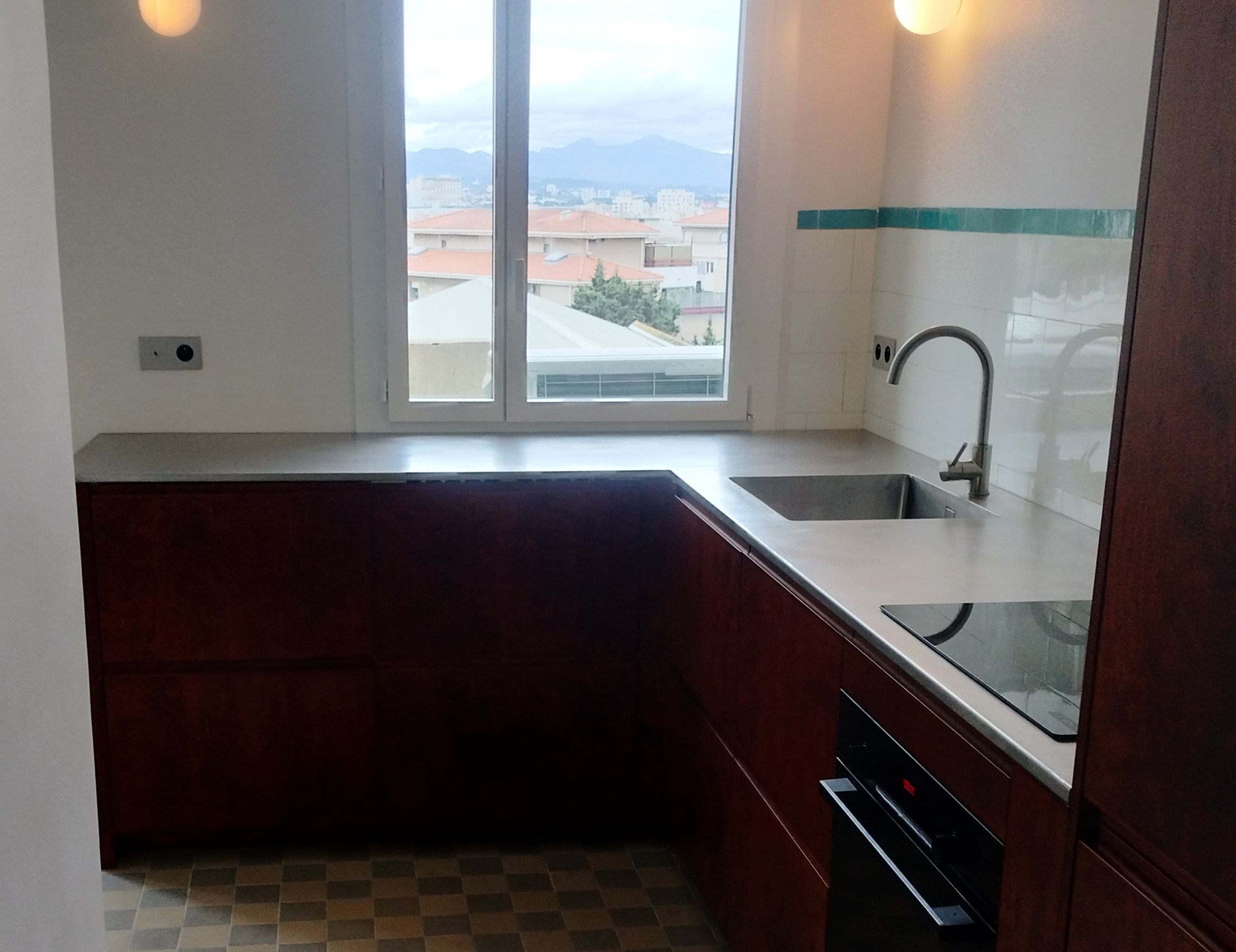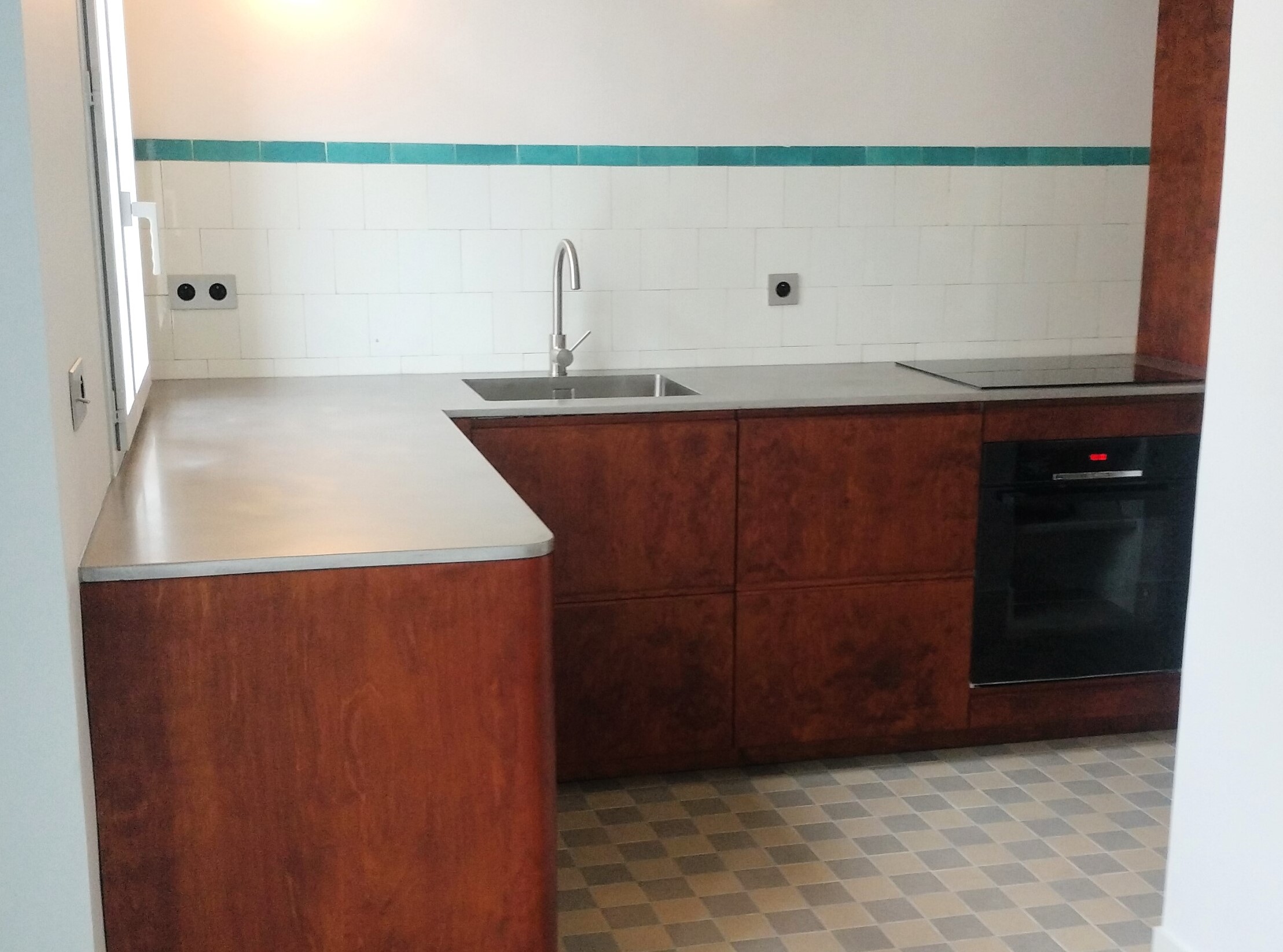 Crédence de cuisine en inox et carreaux de ciment